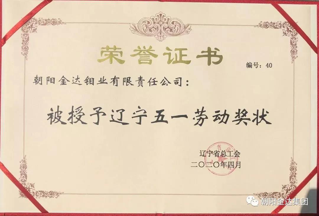 劳动创未来 奋斗正当时 | 祝贺金达钼业荣获“辽宁省五一劳动奖状”