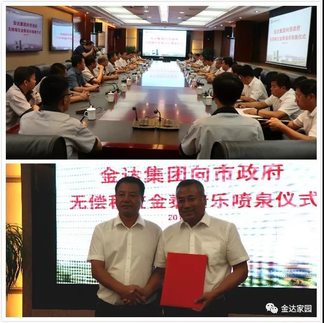 7月13日上午,金泰音乐喷泉广场无偿移交仪式在集团总部举行,董事长赵春雷与市水...